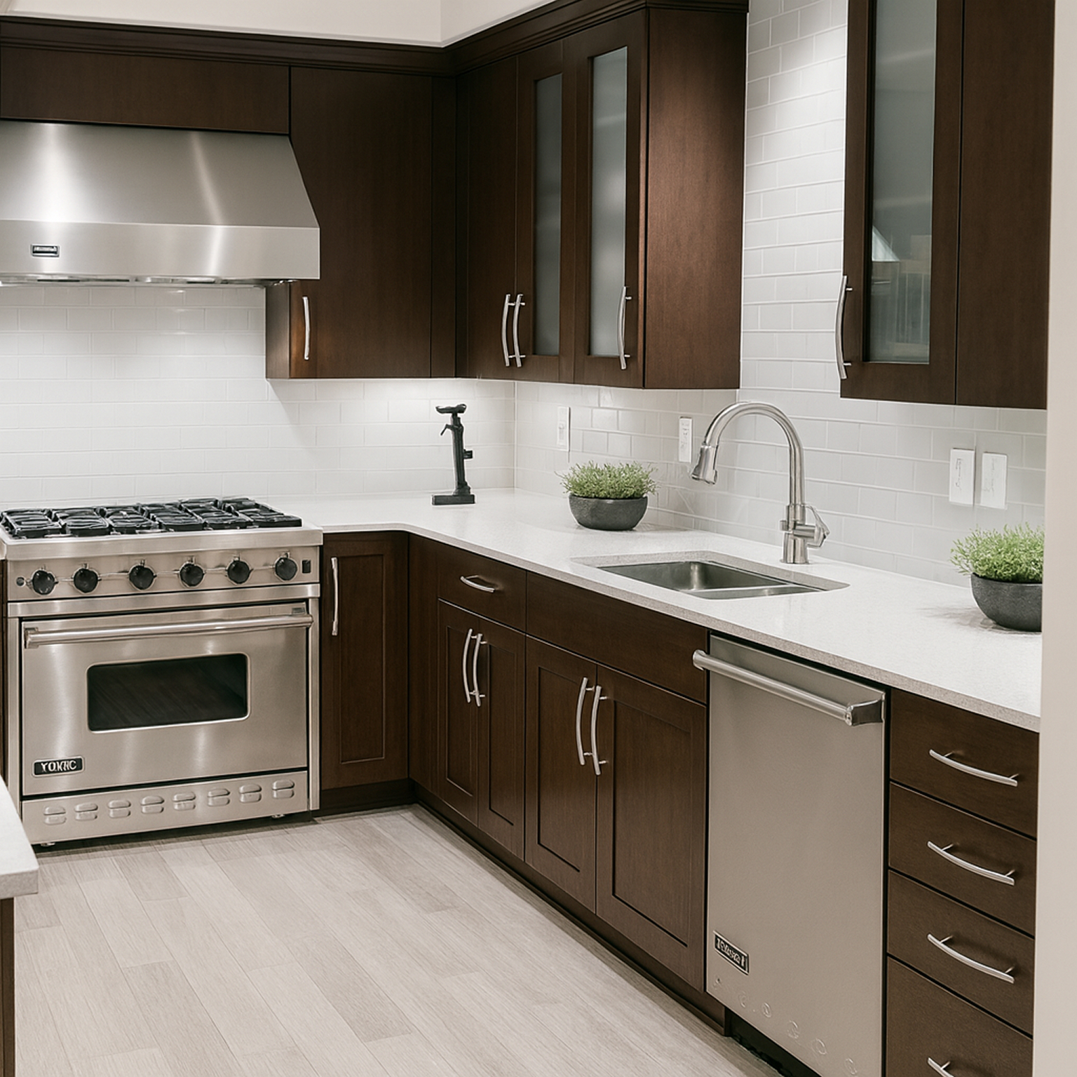 Cornerstone is essentially Shoreline, trimmed down just enough to make it competitive with production cabinets. It retains the same essential quality, European frameless construction and popular options of Shoreline but some of the most custom features have been eliminated. Cornerstone differs from Shoreline in the following ways: